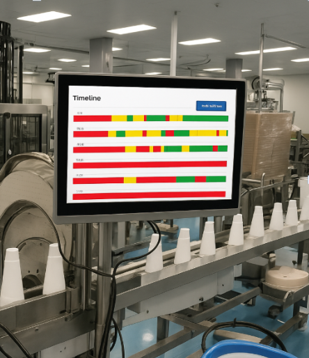AI-powered FactoryOps Platform strengthens quality control by continuously monitoring the production process and automatically triggering quality checks when they matter most. Results are displayed clearly on a live production timeline, with instant alerts pinpointing when things go wrong. This lets your team react to issues fast, fix them before they snowball, and keep everyone in the loop